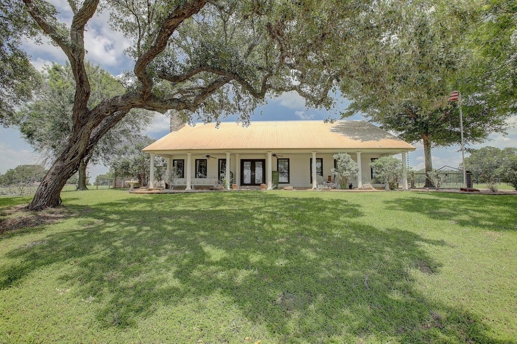 In the very heart of the Rutersville area of La Grange, with sweeping hilltop views and a home that faces the Southwest enabling you to more than enjoy the vivid country sunsets, you have arrived. Only a short distance from the antique corridor of State Highway 159 and a few minutes to Fayetteville, Warrenton, and Round Top. This property would make a great homestead, weekend property, or a short-term rental income producing opportunity. A rich history is embedded in this land and was once the location for the first institute of higher education in Texas. The Rutersville College was founded in 1837, by Martin Ruter of which the college and the township were named for. Also, a Texas Historical Commissioned marker setting states this property is the site of the first Methodist Annual Conference in Texas. With abundant Oak/Pecan trees and a pond, the Austin-stone home has been enjoyed over the years by happy families. The staging of the sunset viewing is complete with white pillars that accent the front porch running the width of the home façade, with chairs in place for your morning coffee and enjoying the hilltop breezes and super views. Entering the front lead-glassed double doors, you will enjoy the high cathedral expanse, floor-to-ceiling windows, a north- walled rock wood-burning/gas fireplace, Saltillo tiled flooring and a spacious loft bedroom/bath area. A split floorplan with the Living/Dining/Kitchen living space area open via French doorway to the sunroom that also serves as a huge Dining Room and with access to the huge open-aired Pavilion covered outdoor space with outdoor cooking/entertaining pool side area to enjoy. Also convenient, an over-sized garage/workshop and plenty of room to add or build several guesthouses for family or short-term rental opportunity. Loads of storage, 3 walk-in closets (one is cedar lined), all tile/wood flooring, light-filled quiet country living enjoyment. Call today to view this beautiful home and acreage.