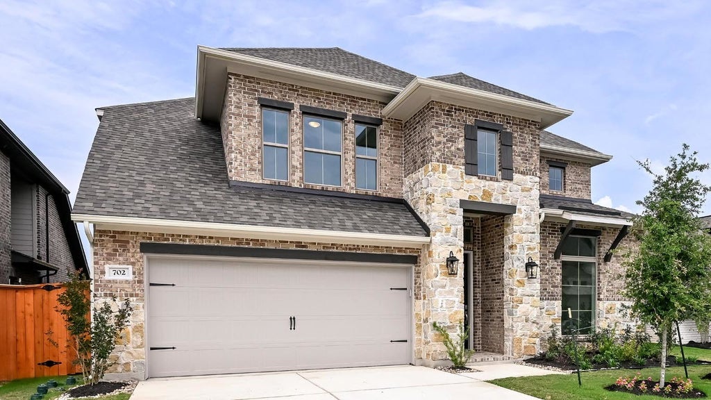 READY FOR MOVE-IN! Home office with French doors and 11-foot ceiling set at two-story entry. Open kitchen features deep walk-in pantry, 5-burner gas cooktop and generous island with built-in seating space. Dining area opens to two-story family room with wall of windows. Primary suite includes bedroom with 10-foot tray ceiling. Double doors lead to primary bath with dual vanity, garden tub, separate glass-enclosed shower and large walk-in closet. An additional bedroom is downstairs. Secondary bedrooms and game room with 10-foot tray ceiling are upstairs. Covered backyard patio. Mud room off two-car garage.