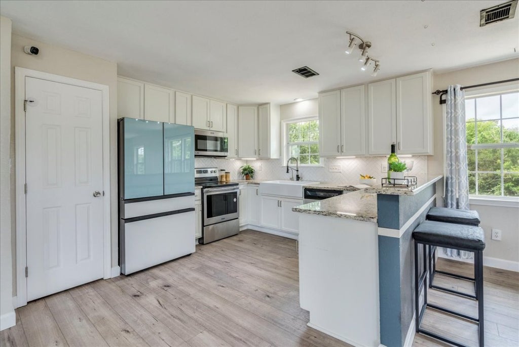 Modern, quirky, and unapologetically Austin. This fully renovated Oak Hill home brings Hill Country cool with a twist including a climate controlled chicken shed that’s as fun as it is functional. With four outdoor living spaces and a layout that flips tradition, this property was designed for anyone who craves character over cookie cutter. Upstairs, the kitchen and living area are intentionally placed to capture Hill Country views from your sleek aluminum deck. Cook, sip, and relax while the breeze rolls through the treetops. Downstairs, the primary suite is your retreat with a spa worthy bathroom and private covered patio that sets the stage for slow mornings, quiet evenings, or that nap you didn’t mean to take. Multiple outdoor areas make entertaining effortless with sunset dinners, backyard hangs, and anything in between. The custom rust colored garage door adds a bold, modern edge to the two car carport making your arrival just as memorable as the rest of the home.