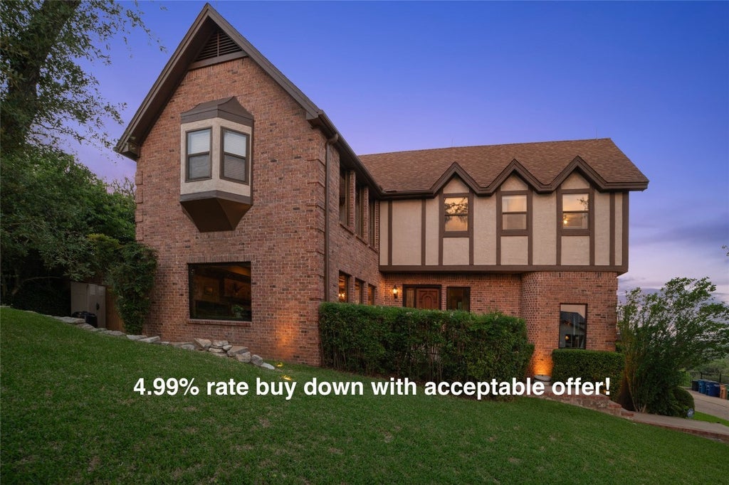 Seller is offering to buy down rate to 4.99% with acceptable offer! Contact agent for more info. Tucked into the heart of Beecave Woods, this Tudor-style home offers privacy, generous square footage, and canyon-to-city views from a .43-acre lot. It's within walking distance to Eanes ISD schools, coffee shops, and restaurants—just five minutes from downtown and Zilker Park. The interior spans 3,891 square feet with five bedrooms and 3.5 bathrooms, three of which have been stylishly updated. The kitchen includes granite countertops, a center island, Viking range with hood, new Subzero refrigerator, and sweeping views. The spacious primary suite features a cozy window seat and a recently renovated bathroom with a walk-in shower and dual vanity. Recently tuned up air conditioning system with new ductwork Plenum register boxes and vents. Other recent upgrades include a new roof, tankless water heater, laminate flooring, several new windows, attic vent with heat barrier, and Google Fiber. Outside, the yard becomes a retreat: a resurfaced pool, hot tub deck with skyline views, seven seating zones, and a two-story treehouse complete with lights and AC. There's also a vegetable and herb garden with dedicated irrigation, plus a powered greenhouse. Few homes offer such an intentional blend of natural beauty, functional upgrades, and flexible spaces. Coupled with canyon vistas and a productive garden, this property balances retreat and convenience while being an entertainer's dream.