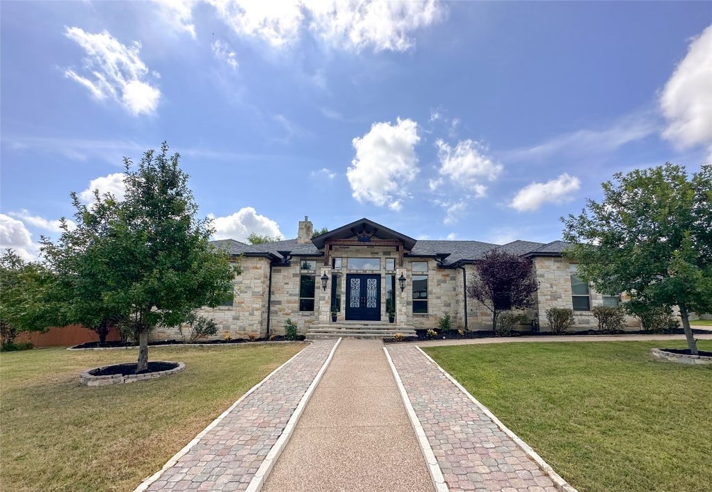 ***Back on the Market!*** We’re excited to offer this beautiful property once again. The previous buyers loved it—but didn't to move forward due to timing with the sale of their own home. Their change of plans means a fresh opportunity for someone else to make this place their own. If you missed it the first time, now’s your chance! ***Motivated Seller is offering $10,000 in Flex Cash to the buyer, which can be used for price reduction, closing costs, rate buy-down or debt reduction — buyer's choice.*** This stunning former Flintrock Builders Model Home is a true trophy residence, celebrated with multiple awards at the 2018 Central Texas Parade of Homes, including Best Overall, Best Exterior, Best Kitchen & Best Interior Design. Step inside to experience an open, unique design with eye-catching details such as mirror-glass flooring, a charming wine nook with wrought iron doors & views of the expansive outdoor living area with mature trees beyond the fence that enhance privacy. Located on a prime corner lot, this home offers both space and distinction. The soaring barrel ceilings add grandeur to the spacious living and dining areas. The gourmet kitchen features exotic granite countertops, stacked stone backsplash, and top-of-the-line black slate appliances, including a convenient pot filler. The primary suite is oversized with a built-in sitting area in the bay window, while the luxurious primary bath boasts a copper clawfoot tub within the wet room/shower, complete with a rain head shower from the ceiling & zero-rise entry for seamless access, dual copper sinks on separate vanities and a large walk-in closet. Enjoy movie nights in the media room with stadium seating, a mini fridge, sink, and custom cabinetry for snacks and entertainment essentials. . Covered back patio features an outdoor kitchen & a fireplace. Oversized 3-car garage spray-foamed for energy efficiency. This custom home combines spaciousness, elegance & award-winning design.